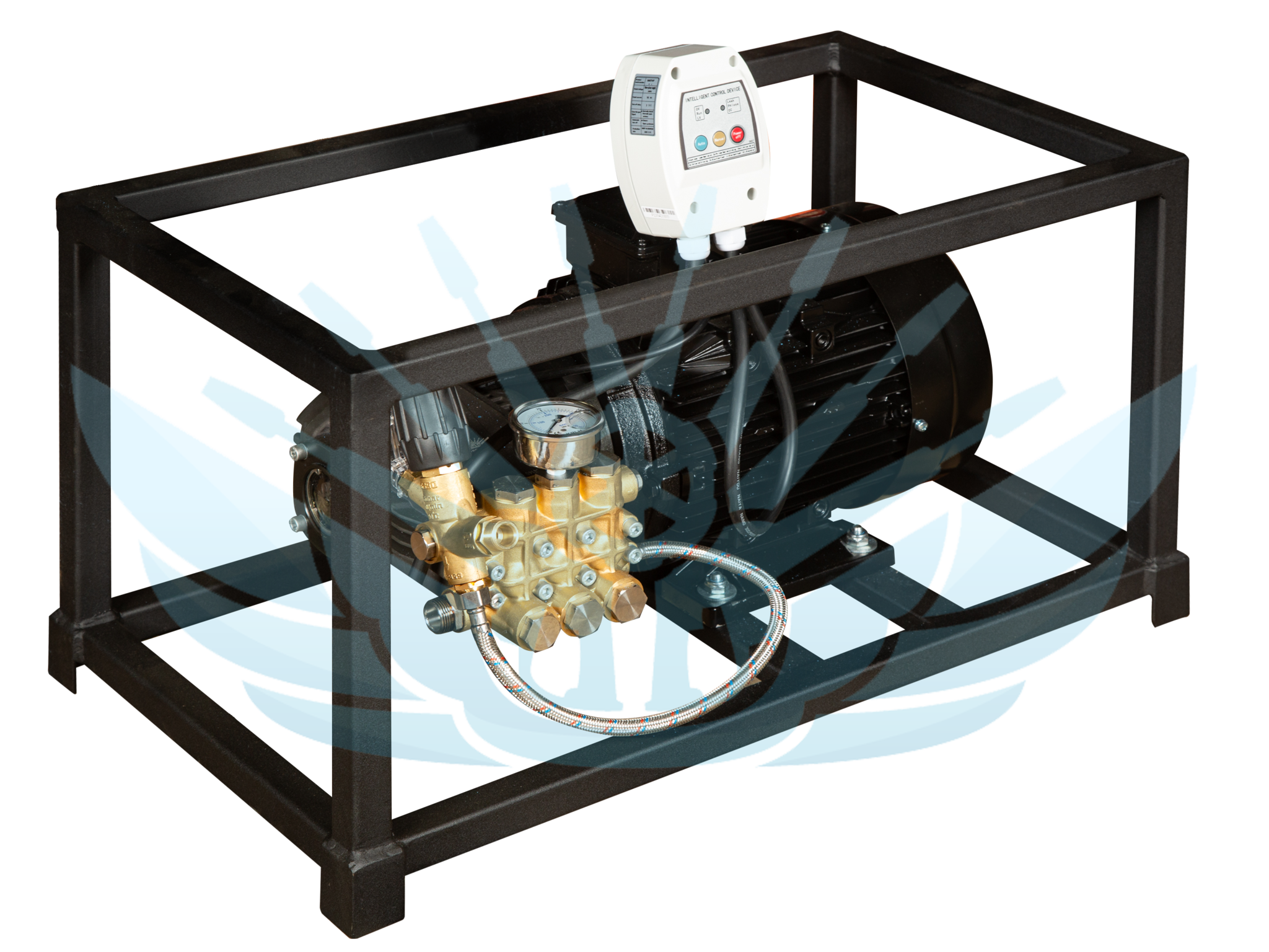Аппарат высокого давления надежный и крайне простой в обслуживании. Он крепится на прочной металлической раме. Профессиональный насос высокого давления и электродвигатель с защитой от перегрузки повышают эффективность очистки и надежность эксплуатации. Установка оснащена регулятором высокого давления с системой Total Stop (отключение АВД при отключении курка пистолета). Двигатель Урал Электро. У нас в производственной линейке вы так же можете найти установки с большим давлением для удаления корозии и не только.