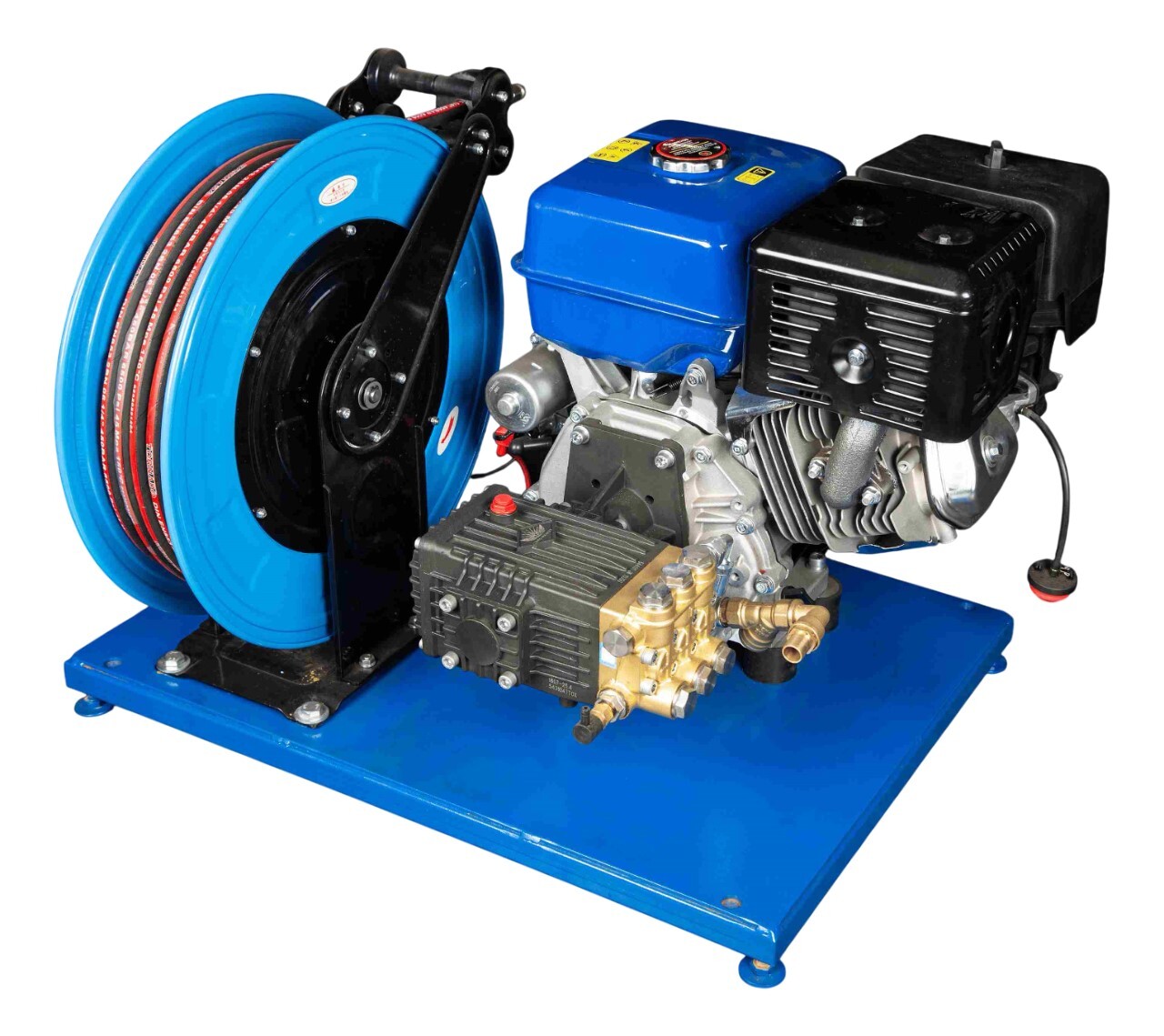 Инерционный барабан упрощает работу с аппаратом, позволяя быстро разматывать и сматывать шланг. Это учитывает опыт пользователя, который часто сталкивается с необходимостью перемещения и маневрирования в результате работы. Бензиновый двигатель также обеспечивает быструю готовность к эксплуатации, поскольку не требует долгих подготовительных манипуляций.