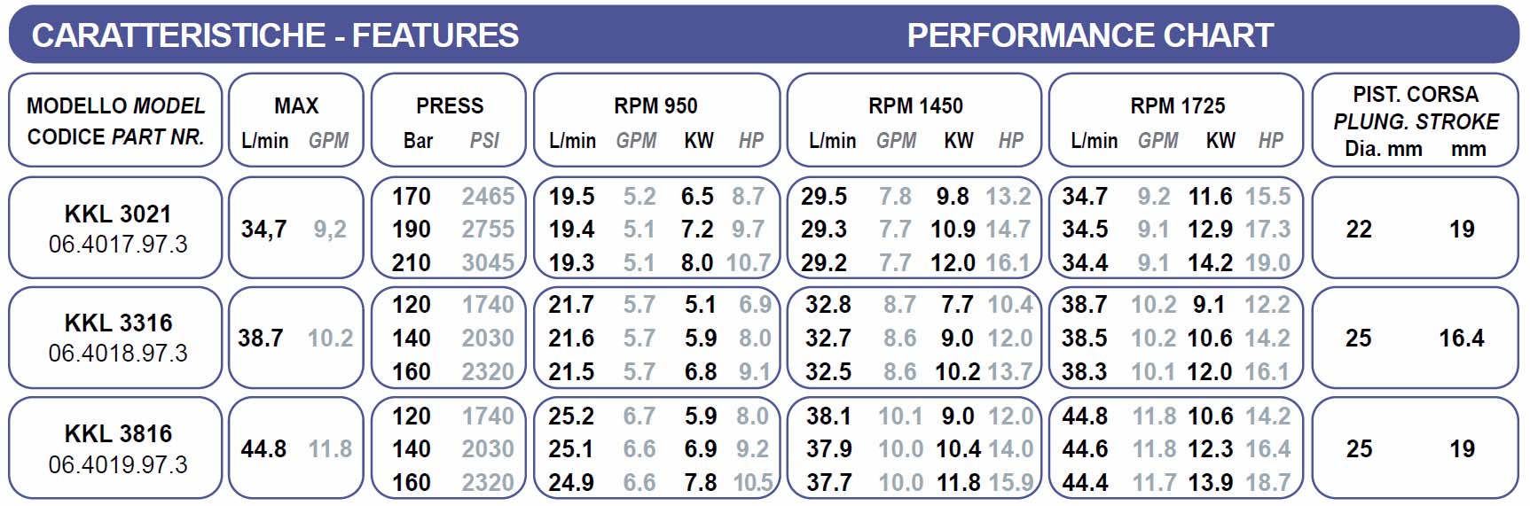 Трехплунжерный насос Bertolini KKL 3816 имеет производительность 38 литров в минуту и максимальное давление в 160 бар. Это делает его идеальным выбором для задач, требующих высокой мощности и надежности.
