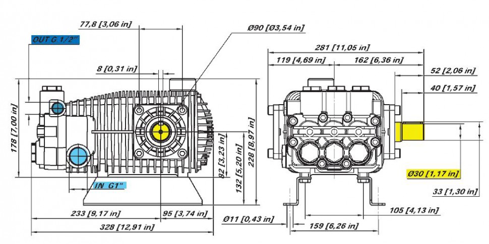 Трехплунжерный насос высокого давления Bertolini RBL 4219-P (42 л/мин 190бар) 16 кВт
