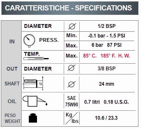Производительность Bertolini TAM 2015 PRO (сталь 316) — 20 л/мин. |