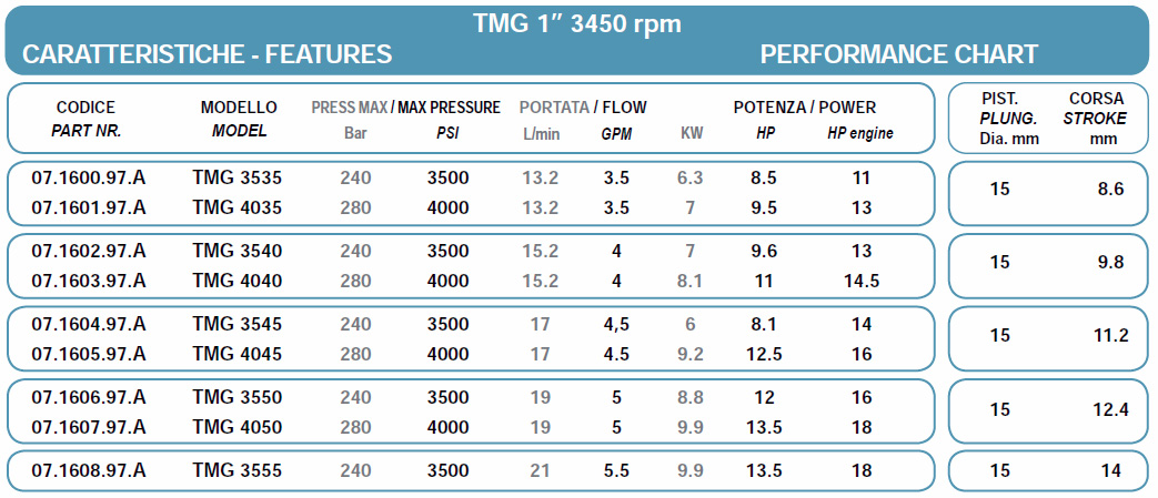 Трехплунжерный насос Bertolini TMG 3540 имеет производительность 15 литров в минуту и максимальное давление в 280 бар. Это делает его идеальным выбором для задач, требующих высокой мощности и надежности.