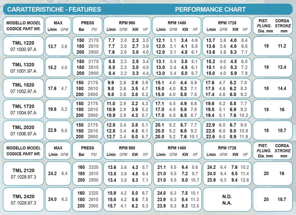 Трехплунжерный насос Bertolini TML 3016 имеет производительность 30 литров в минуту и максимальное давление в 160 бар. Это делает его идеальным выбором для задач, требующих высокой мощности и надежности.