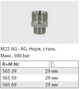 Переходник штуцер 22*1,5 штуцер 1/4 ( нерж) 500 бар