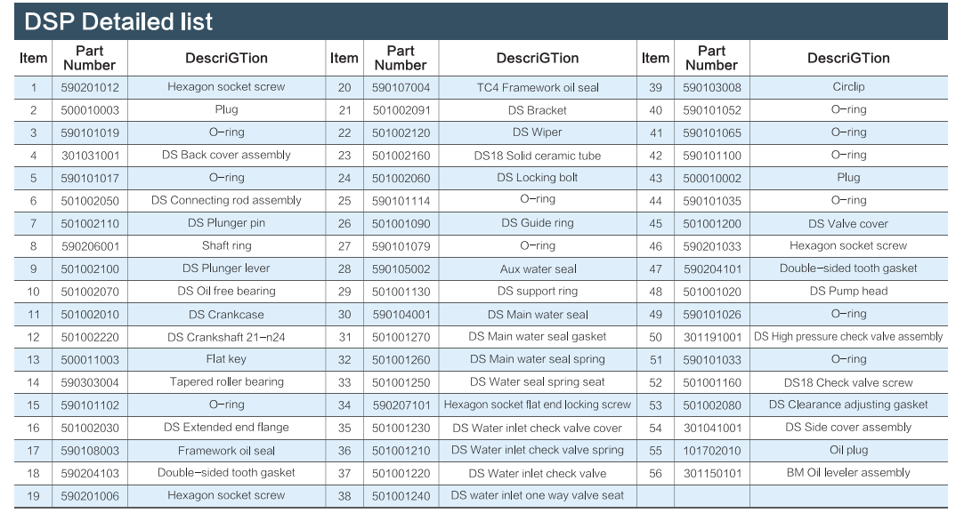 Для достижения оптимальной производительности и долгого срока службы насоса DSP 16500 важно регулярно выполнять техническое обслуживание и проверять состояние расходных материалов, соблюдать инструкции производителя по эксплуатации и обслуживанию. Это поможет гарантировать надежную и эффективную работу насоса при высоких давлениях и больших объемах перекачки.