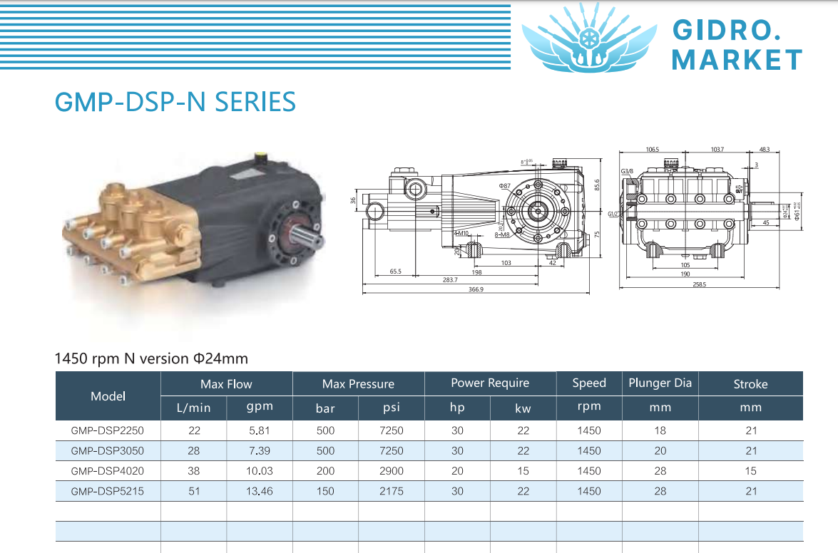 Насосы серии GM - трехпоршневые промышленные насосы высокого давления с шатунно-кривошипной системой.