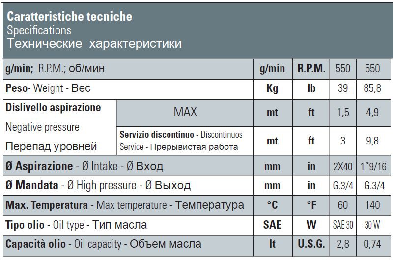 Производительность Bertolini С 146 PP — 180 л/мин. |