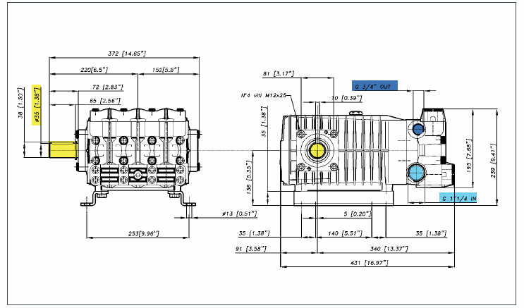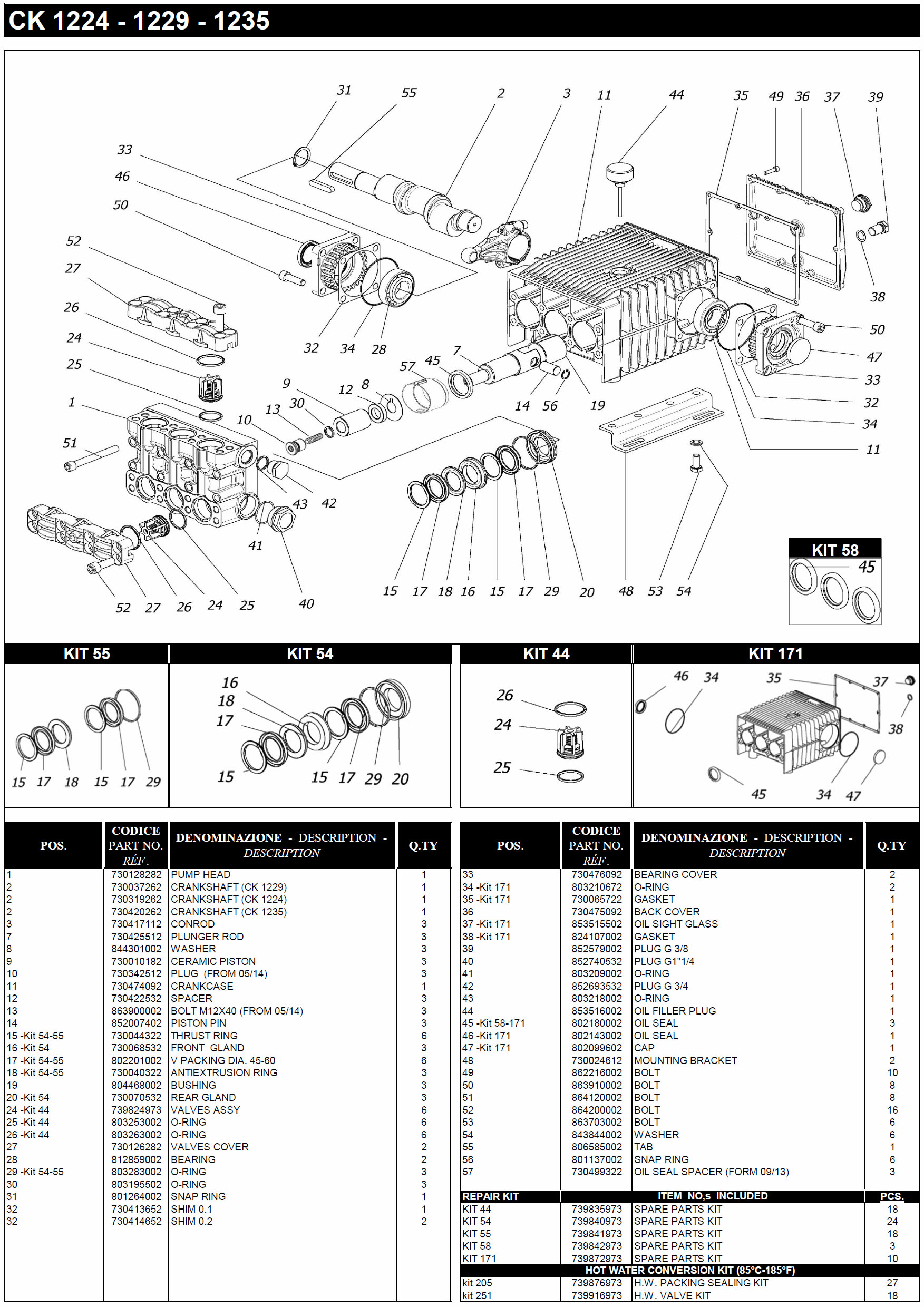 Трехплунжерный насос высокого давления Bertolini CK 1229 (126 л/мин 80бар) 20 кВт