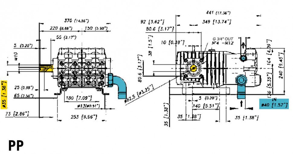 Трехплунжерный насос высокого давления Bertolini CKA 110 PP (105 л/мин 70бар) 14кВт