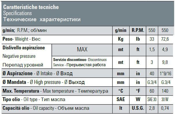 Производительность Bertolini CKA 110 PP — 105 л/мин. |