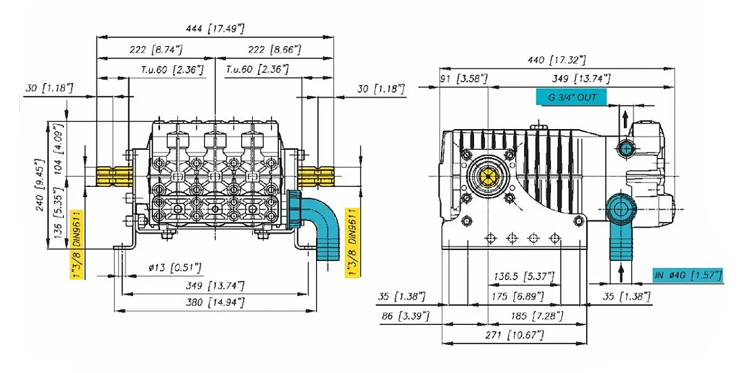Трехплунжерный насос высокого давления Bertolini С 40.1 (40 л/мин 50бар) 3 кВт