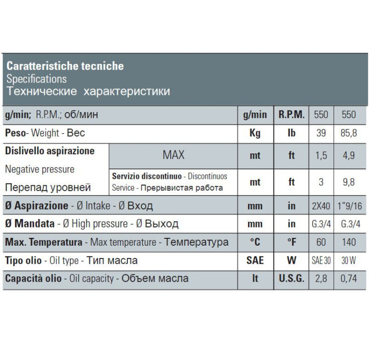 Производительность Bertolini CKA 146 РP — 141 л/мин. |