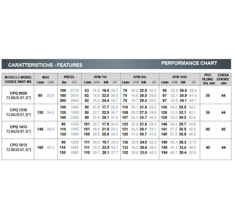 Трехплунжерный насос Bertolini CPQ 1413 имеет производительность 140 литров в минуту и максимальное давление в 130 бар. Это делает его идеальным выбором для задач, требующих высокой мощности и надежности.