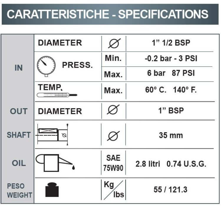 Производительность Bertolini CPQ 1413 — 140 л/мин. |