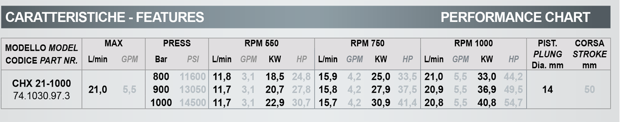Производительность Bertolini CHX 21-1000 (316) — 21 л/мин. |