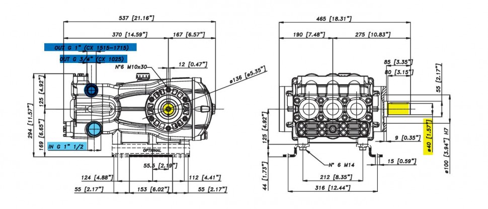 Трехплунжерный насос высокого давления Bertolini CX 1025 (100 л/мин 250бар) 51 кВт