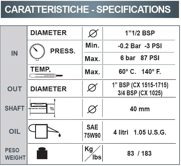 Насосы Bertolini известны своей долговечностью и устойчивостью к износу. Модель CX 1025 не исключение: она создана из высококачественных материалов, которые обеспечивают долгий срок службы и минимальные затраты на обслуживание.