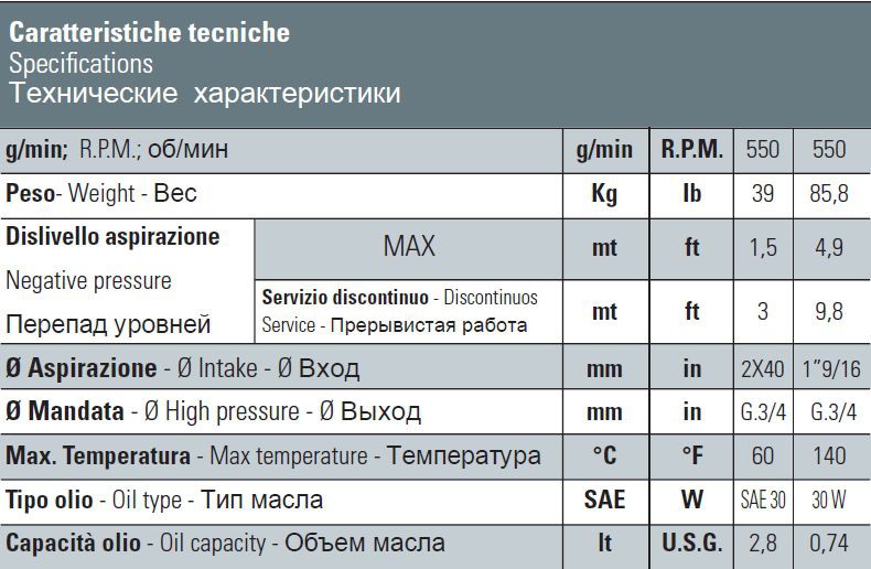 Производительность Bertolini CK 230.1 PP — 220 л/мин. |