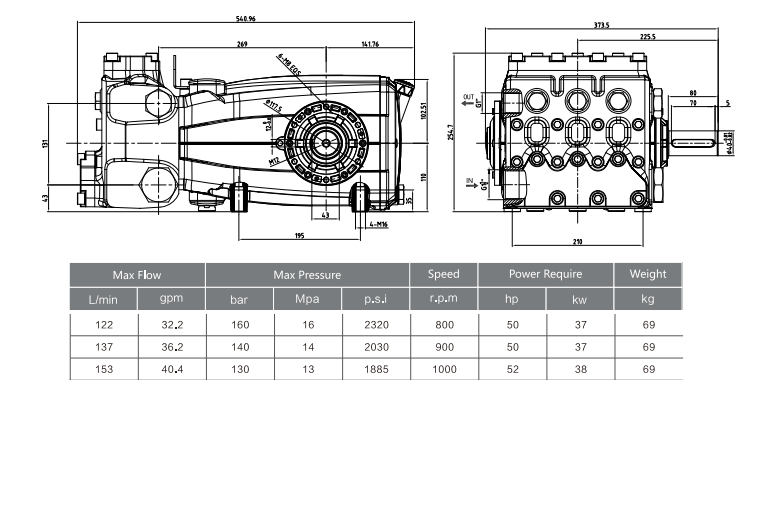 Плунжерный насос высокого давления HPP ELS 150/130 130 бар 150 л/мин является прямым аналогом насосов GM Pumps GF 36 и PINFL PF36