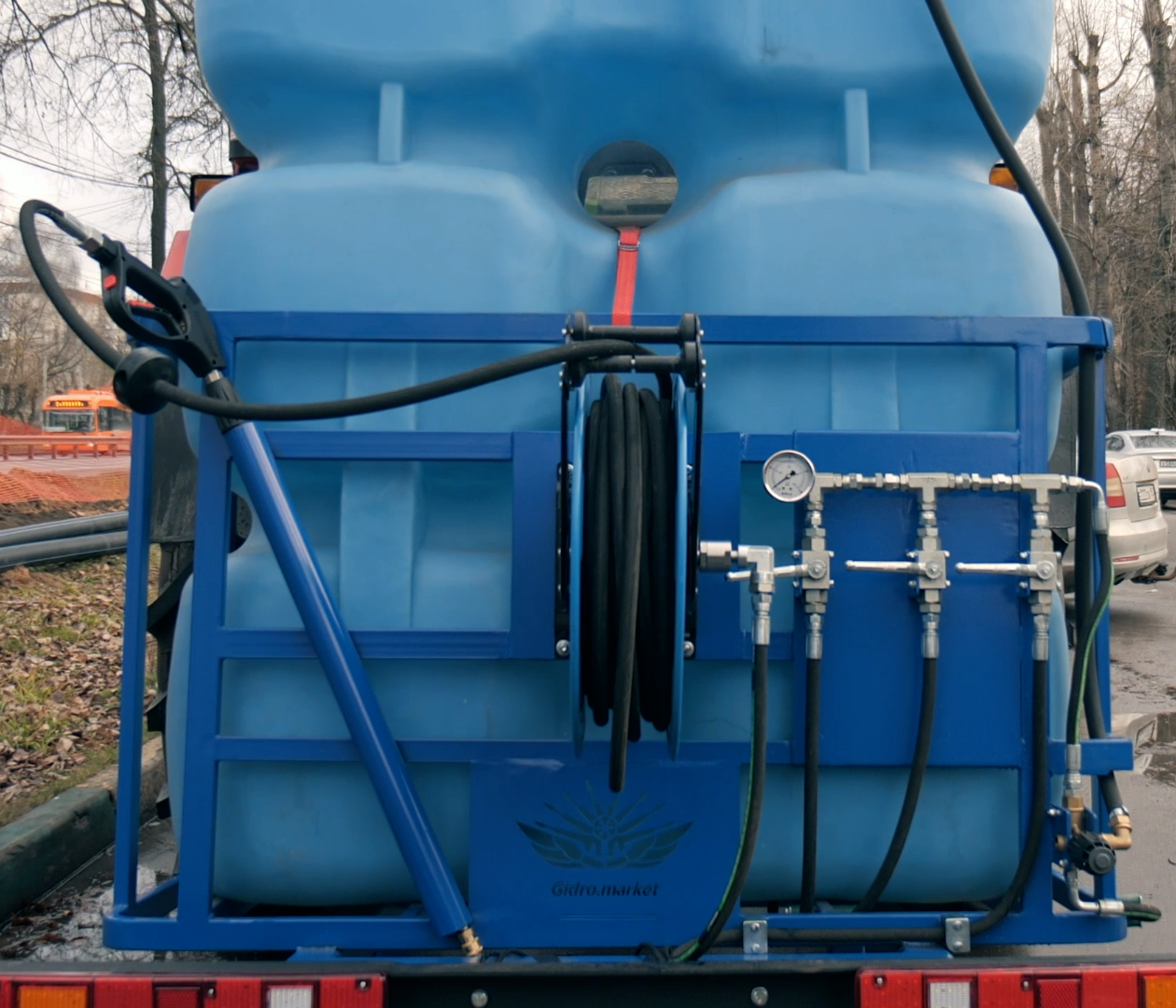 Объём бака в 1000 литров позволяет проводить длительные работы без необходимости частого пополнения запасов воды или моющих средств. Это особенно важно при выполнении значительных объёмов работ, таких как очистка зон с интенсивным движением или масштабные мероприятия по благоустройству.
